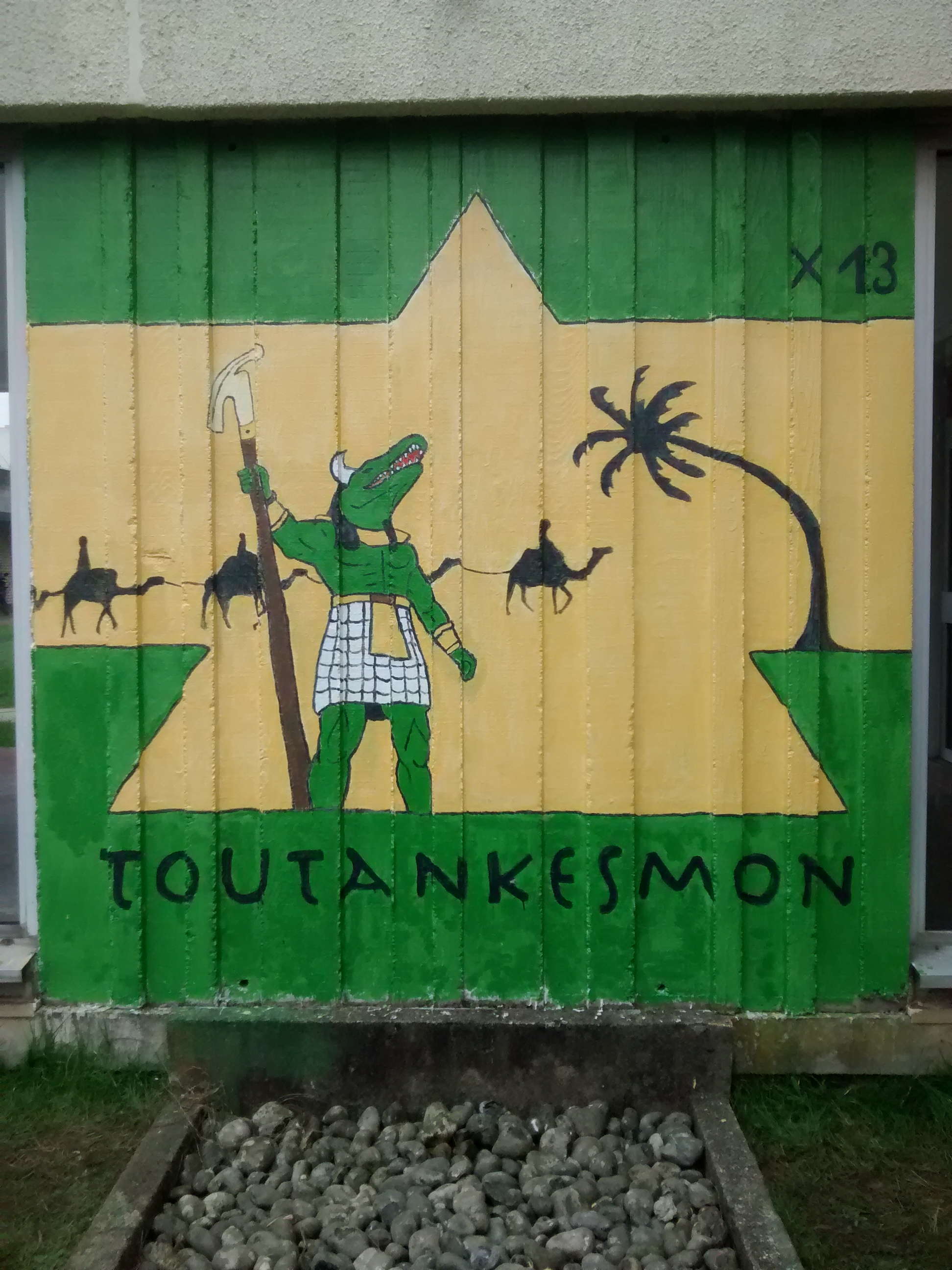 Onto my story: The Kès is the student government at Polytechnique that organizes activities and such. It consists of 15 students that run as a group under a theme, and the campaign lasts a full week. This year there were three hopefuls: the Walt DisKès, the Lucky LuKès, and ToutanKèsmon (my favorites from last year were the Kès-Fu Pandas). At the beginning of the week they each paint a mural on the wall of a school building, as seen below.