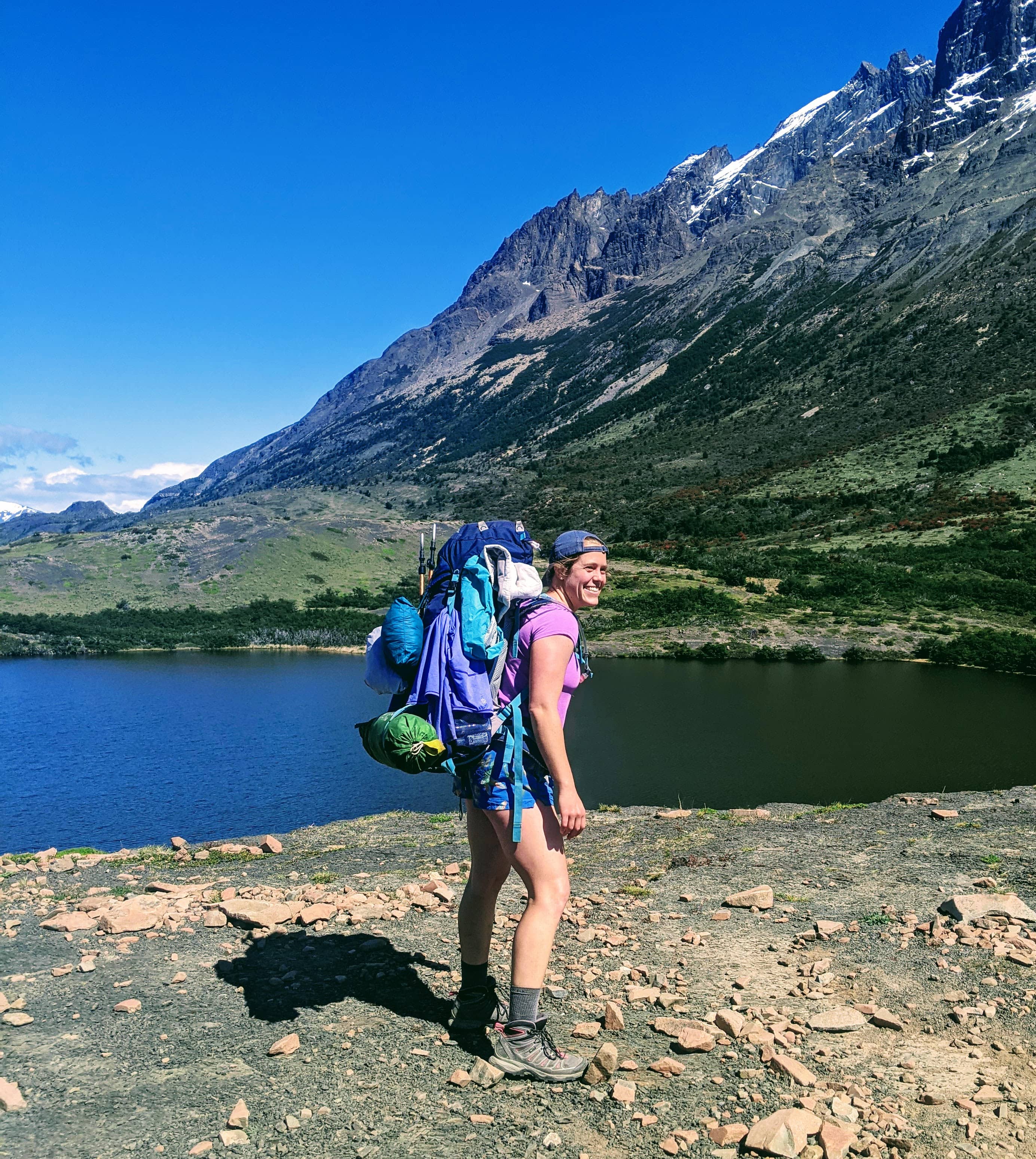 It’s hard to pick a favorite part of the trip, but one of the things we did right was take our time, both when hiking and when planning the route. For example, we stopped for an hour at a beach in the afternoon just before Camping Francés to take a dip and relax and enjoy the scenery. We also staying for two nights at the last camp (Camping Grey) so that we could do both a kayak excursion and a glacier walk. I had never walked (or more accurately, stomped) in crampons before, and I embarrassingly didn’t realize how many features glaciers have. I mean, it seems obvious now, but I was picturing more of a flat meadow of ice, not the wildly wavy and cave-ridden icy landscape that we explored. I highly recommend both activities (in our case run by Bigfoot Patagonia) if you’re planning a trek. Plus staying for two nights in the same camp meant we didn’t have to pack up our tents and packs that day which was a lovely break near the end of the trip.