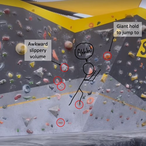 Thus it came to pass that on Friday afternoon, I set off on my bike downhill towards the new climbing gym close to the beach. For a while, it was just me and a 12-year-old named Lukas that I’ve seen there a few times. We’re sort of friends in the sense that basically anytime I try a boulder problem and don’t get it on the first try, he proceeds to complete it perfectly. I’m not totally sure whether he thinks he’s being helpful or a showoff but his beta is useful. Plus kids have a wild strength-to-weight ratio so I don’t feel bad about it.