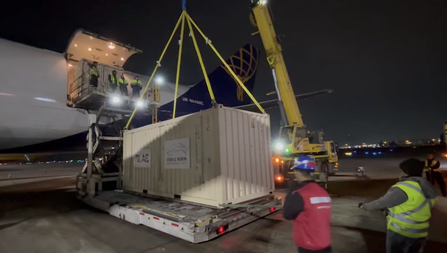 Fast forward to after the coolest flight of my life. I landed in Santiago at 4am local time (1am California time) and was immediately greeted at the door of the airplane by an eager cargo handler from the new company who was frantically looking for rigging. For context, we had stipulated in the contract that the LSST Camera container could only be handled by crane, not forklift, and that only project-provided rigging (slings and shackles) could be used to lift it. So really, it was nice to know that point was well-understood by the new cargo handling company. It’s worth pointing out that the camera is in the middle of the plane and not in danger of getting unloaded in the next five minutes, so the franticness of the request wasn’t particularly necessary. But I can empathize with a fellow eager beaver.