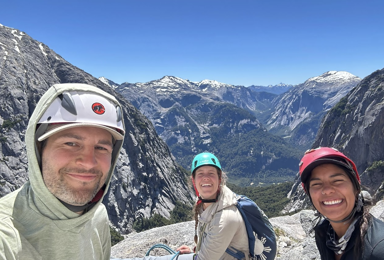 We made it through a couple of pitches that felt a little harder than we expected although some of that was likely due to a lot of rope drag. Ultimately to get onto a big ledge Will had to climb up a scary-looking roof that was definitely harder than 5.6 and involved a little bit of grunting and a lot of wiggling and several pull-ups. He then made a gear anchor up higher and fixed the ropes so that the rest of us could avoid the roof and just climb up on the ropes. Theoretically, ascending directly on a fixed rope (also called “jumaring” or “jugging”) is easier than climbing, but in this case it was also kind of sideways at the beginning so that’s a challenge in and of itself. Plus Pía and Nacho had never jugged up a rope before, so there was a bit of a learning curve. But we all made it!
